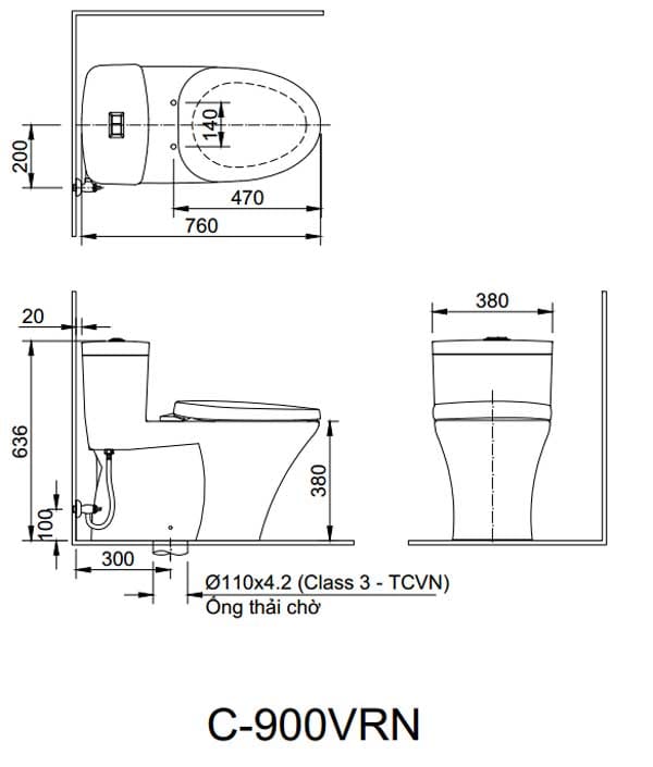 Trang chủ > Thiết bị vệ sinh > Bồn cầu > Bồn cầu 1 khối, INAX - AC-900VRN