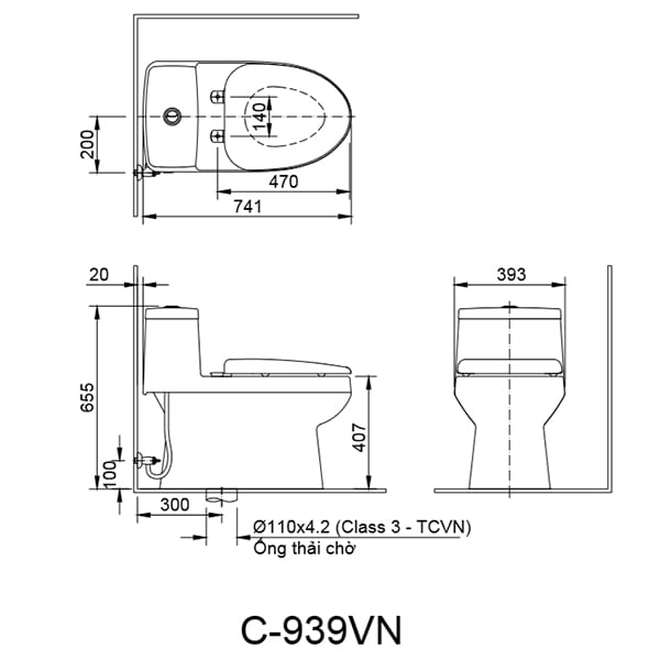 Bồn cầu 1 khối, nắp rửa điện tử – AC-939+CW-KB22AVN