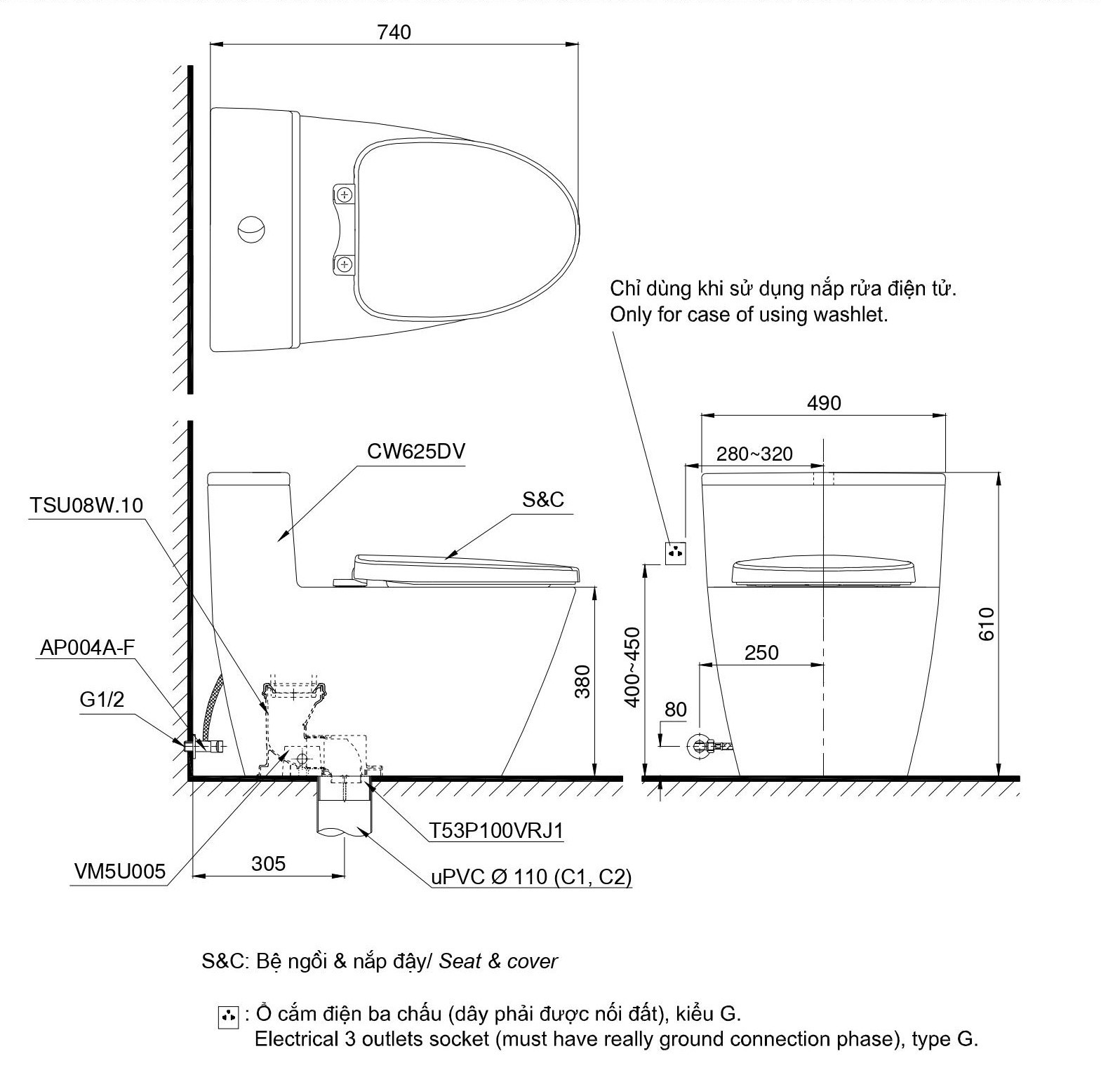 Trang chủ > Thiết bị vệ sinh > Bồn cầu 1 khối kèm nắp rửa điện tử WASHLET dòng S7 TCF4911Z MS625DW11 cao cấp, chính hãng | TOTO