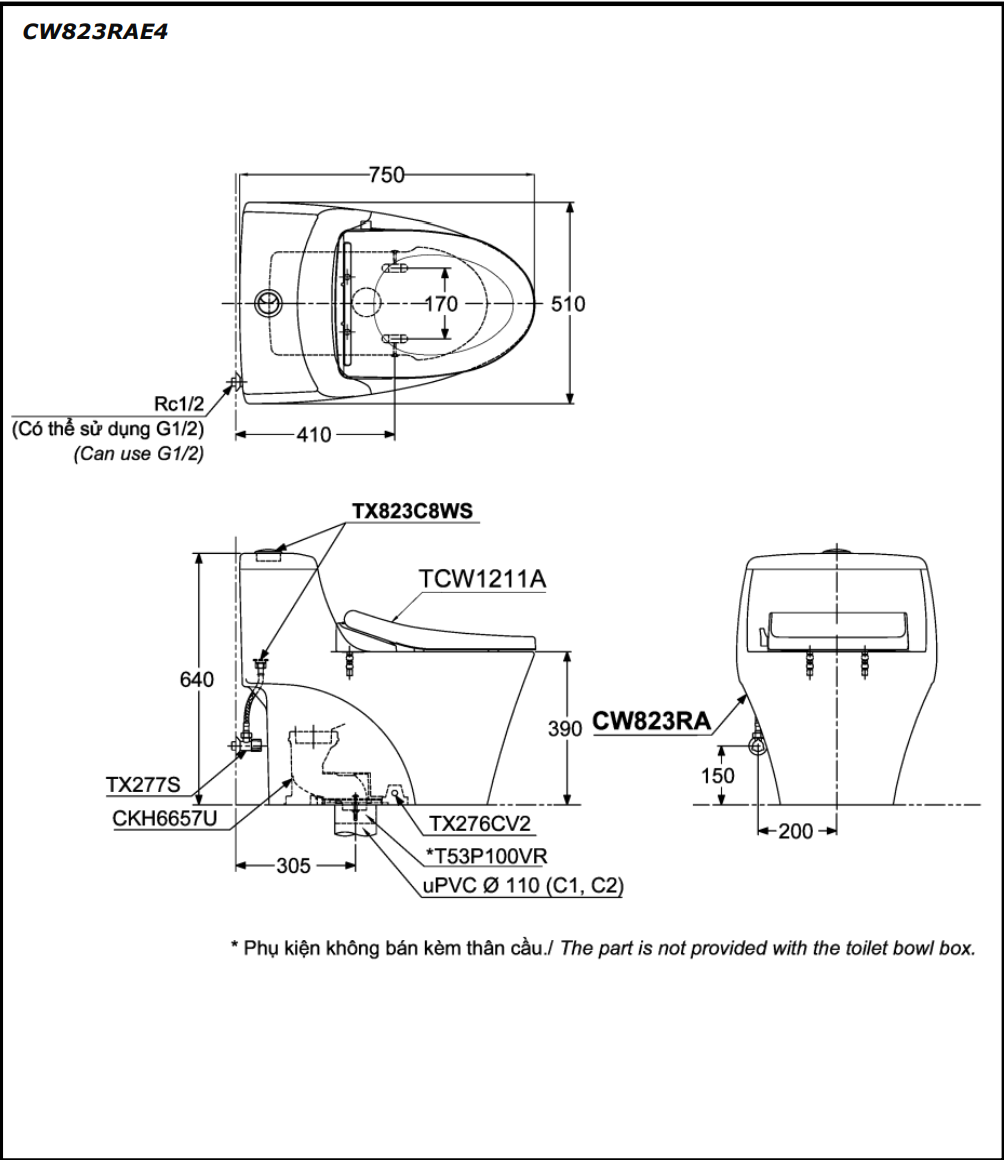 Trang chủ > Thiết bị vệ sinh > Bồn cầu > Bồn cầu 1 khối TOTO kèm nắp rửa cơ ECOWASHER - CW823RAE4