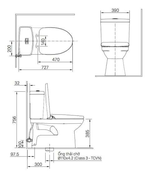 Bồn cầu 2 khối, nắp rửa cơ – C-504A+CW-S32VN-1