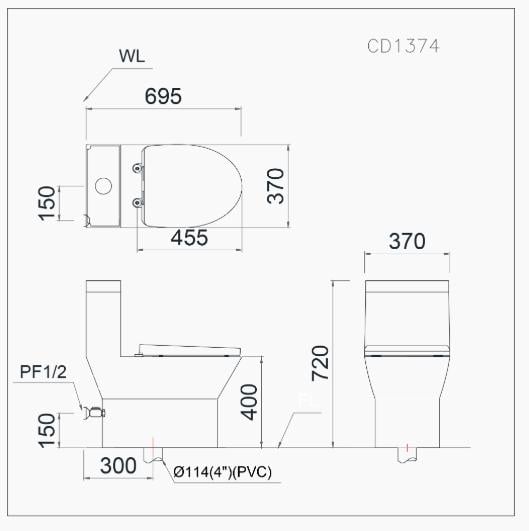 Bồn cầu một khối – CD1374