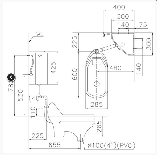 Bồn cầu xổm (bao gồm ống dẫn) – CT1250
