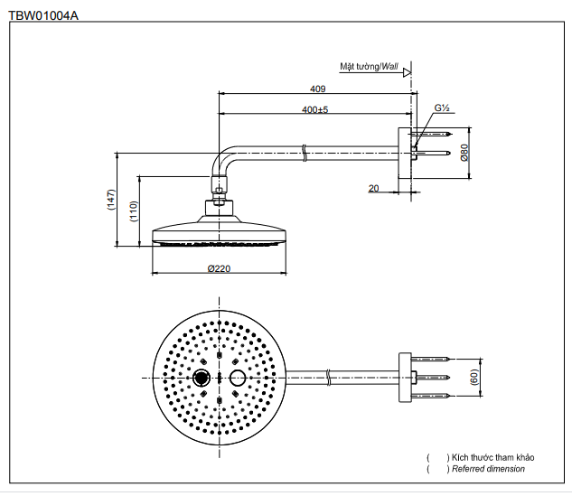 Trang chủ > Thiết bị vệ sinh > Sen tắm > Bát sen gắn tường TOTO TBW01004A 2 Chế Độ