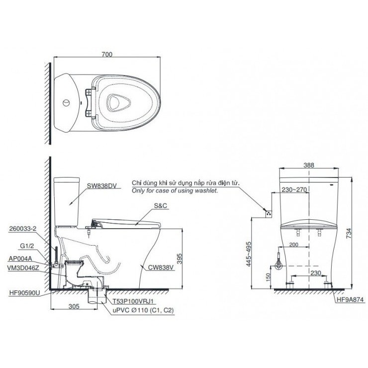 Bồn Cầu TOTO CS838DT10 Nắp Êm TC395VS 2 Khối