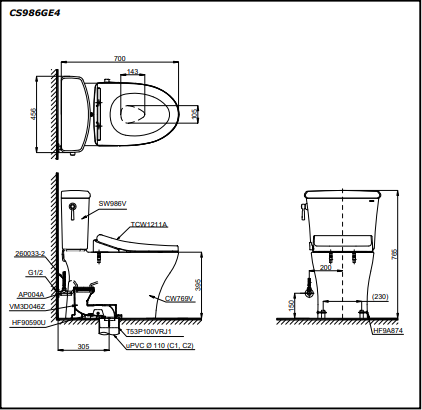 Bồn Cầu TOTO CS986GE4 Hai Khối Nắp Cơ
