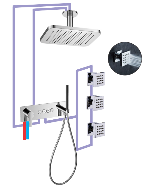 BỘ SEN MƯA ÂM TRẦN, JETS MASSAGE VÀ TAY SEN DIVINI DVF-B16-1/DVF-7308A-2/DVQJ007