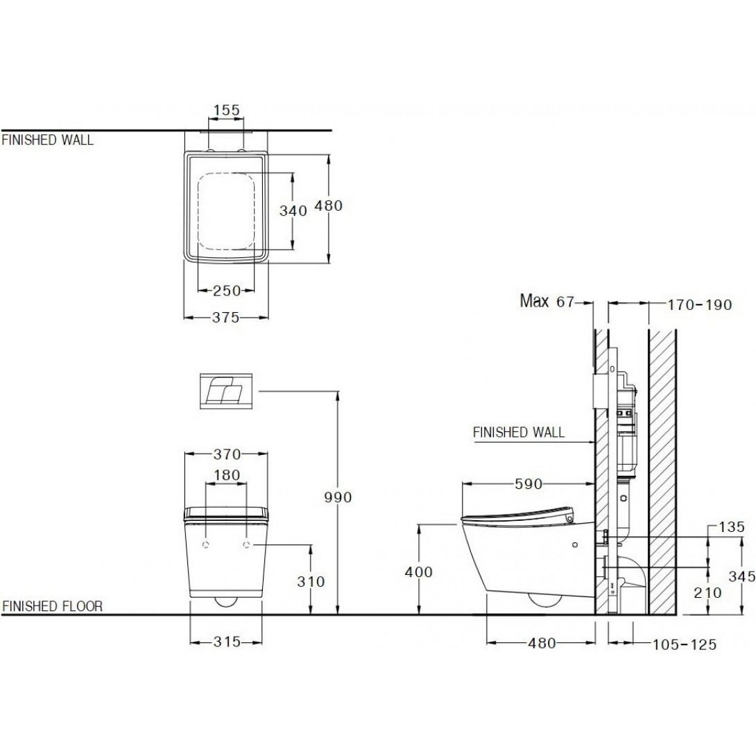Bồn Cầu Cotto SC19337(F) Treo Tường Thoát Ngang