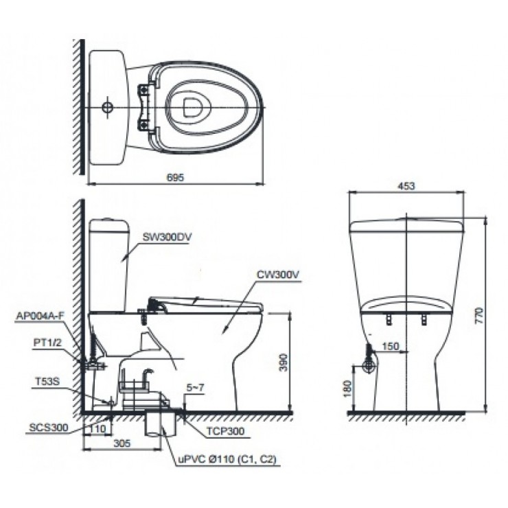 Bồn Cầu Điện Tử TOTO CS300DRW7 Nắp Rửa Washlet
