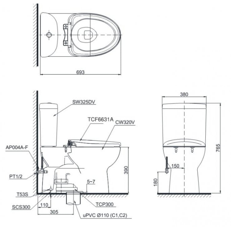 Trang chủ > Thiết bị vệ sinh > Bồn cầu > Bồn Cầu Điện Tử TOTO CS325DRW16 Nắp Rửa Washlet TCF23410AAA C2