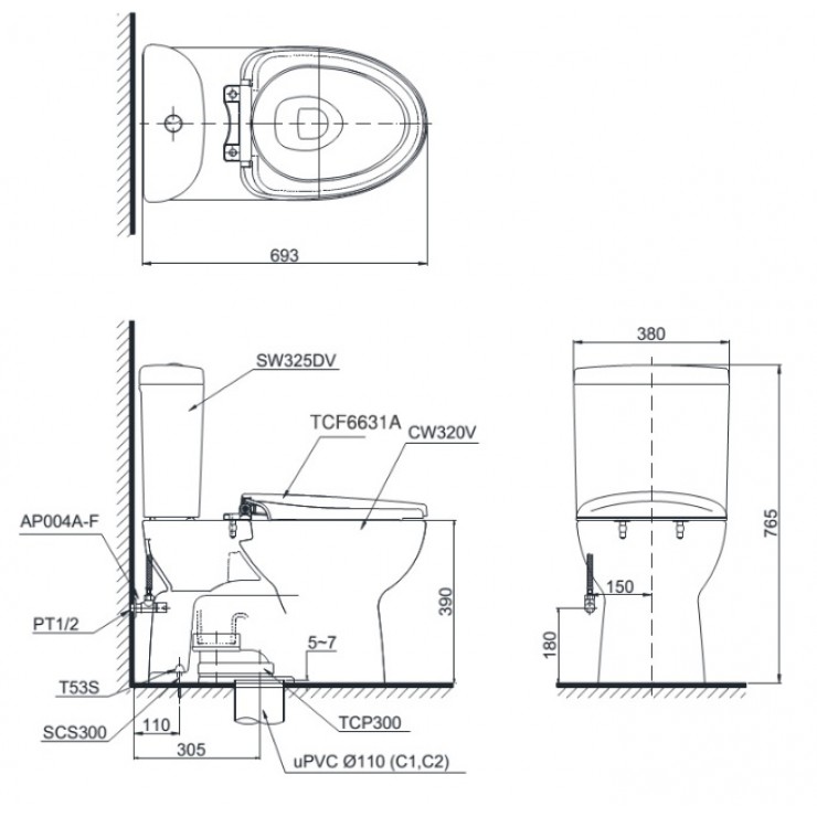Trang chủ > Thiết bị vệ sinh > Bồn cầu > Bồn Cầu Điện Tử TOTO CS325DRW7 Nắp Rửa Washlet