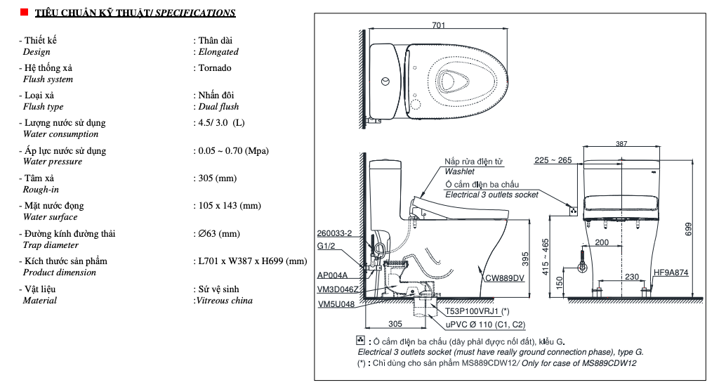 Bồn cầu điện tử TOTO – MS889CDRW12