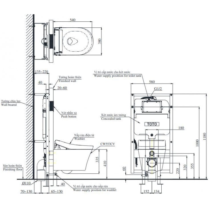 Trang chủ > Thiết bị vệ sinh > Bồn cầu > Bồn Cầu TOTO CW553C/TCF34570GAA/WH172AAT/MB174P#SS Nắp Điện Tử Treo Tường