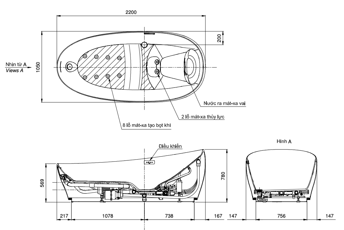 BỒN TẮM ĐÁ NỔI KHÔNG GIAN TOTO GALALATO – PJYD2200PWE#GW