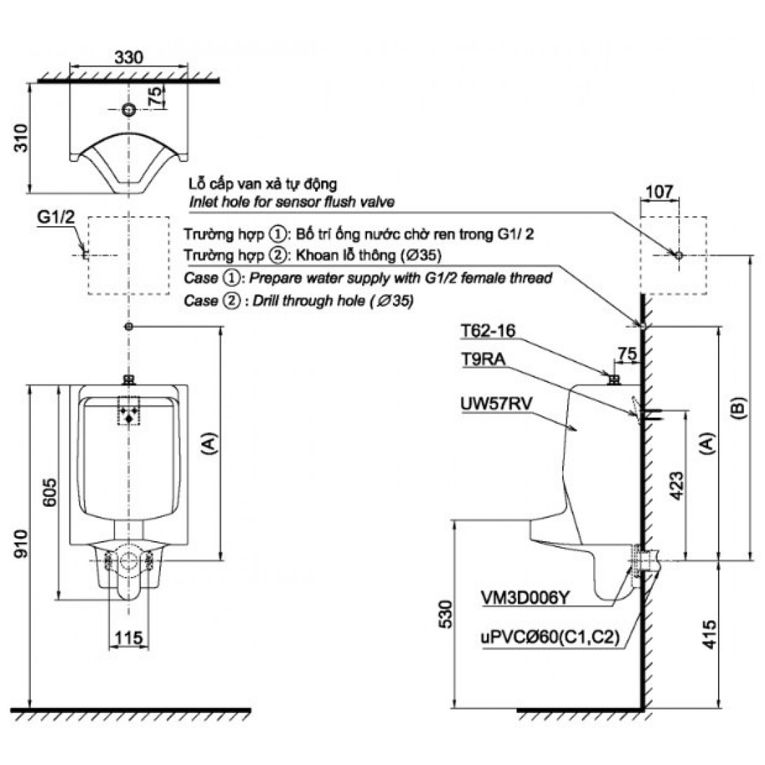 Bồn Tiểu Nam TOTO UT57S#W Treo Tường