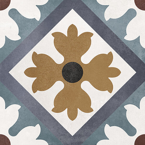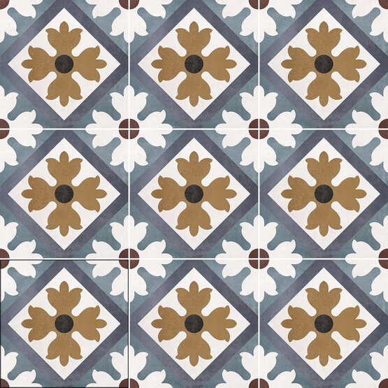 Intense blues, greens, reds, and a touch of mustard are Floriane’s hallmark. A reproduction of hydraulic tiles with a finish reminiscent of colored cement, yet possessing the superb qualities of porcelain. Floriane showcases the mosaic art and experiments with greens, blues, magentas, and whites to create exceptional classic and modern designs.