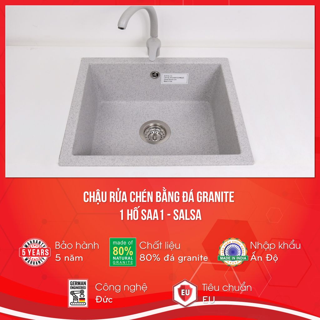CHẬU RỬA CHÉN BẰNG ĐÁ GRANITE – 1 HỐ SAA1 – SALSA