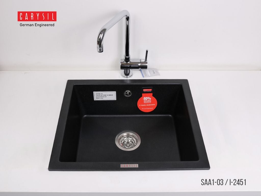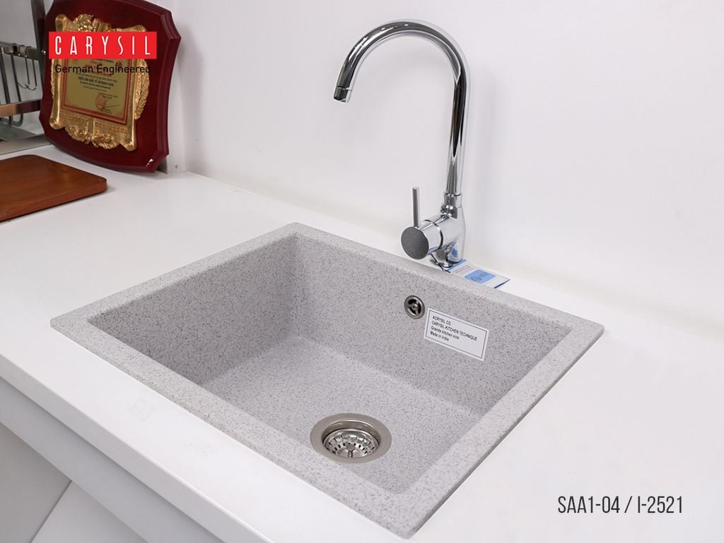 Chậu rửa chén bằng đá Granite SAA1 của Carysil đã bao gồm đầy đủ bộ xả (xiphong)