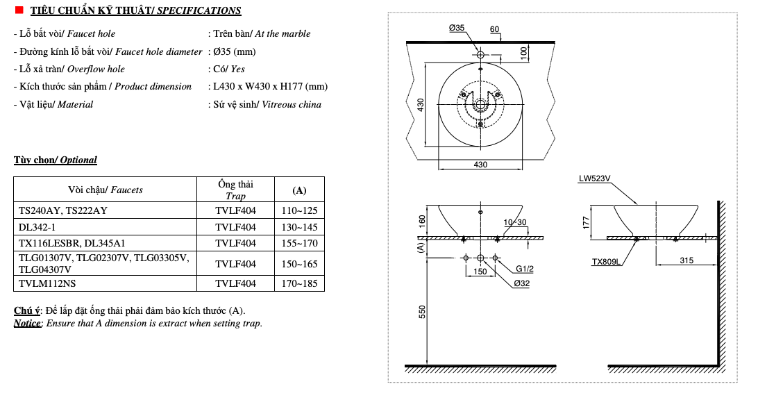 Chậu Rửa đặt bàn – LT523R
