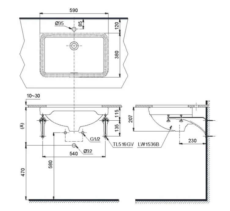 CHẬU RỬA LAVABO TOTO ÂM BÀN (ĐÃ BAO GỒM GIÁ ĐỠ) LW1536V/TL516GV