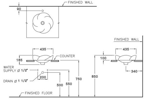 CHẬU RỬA MẶT COTTO – MÀU TRẮNG – C0001