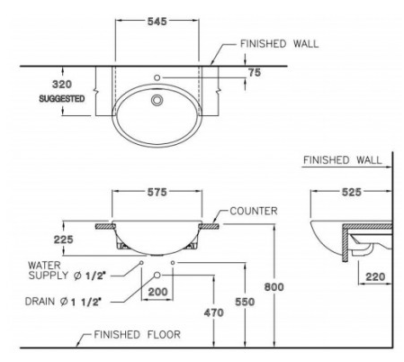 CHẬU RỬA MẶT COTTO – MÀU TRẮNG – C021