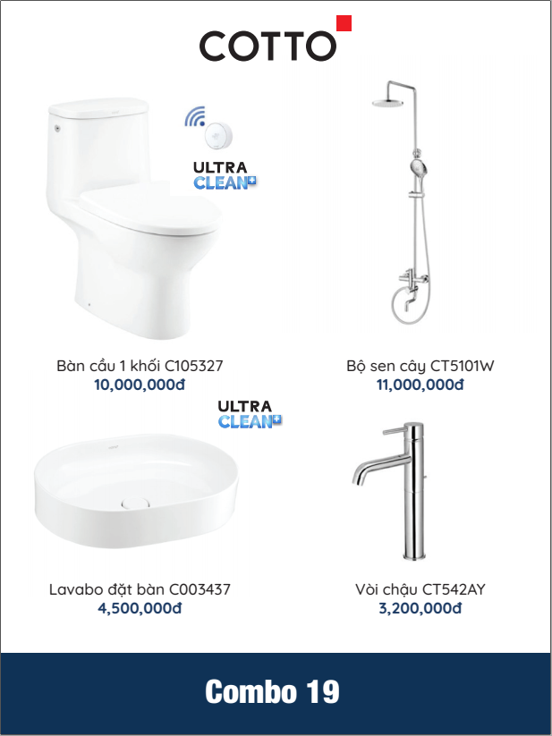 Trang chủ > Combo thiết bị vệ sinh, nhà tắm > Combo > COMBO 19 COTTO: C105327 + C003437 + CT5101W + CT542AY