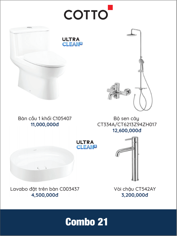 Trang chủ > Combo thiết bị vệ sinh, nhà tắm > Combo > COMBO 21 COTTO: C105407 + C003437 + CT334A/CT6213Z94ZH017 + CT542AY