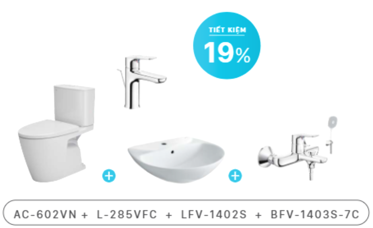 Trang chủ > Combo thiết bị vệ sinh, nhà tắm > Combo INAX > COMBO: AC-602VN + L-285VFC + LFV-1402S + BFV-1403S-7C