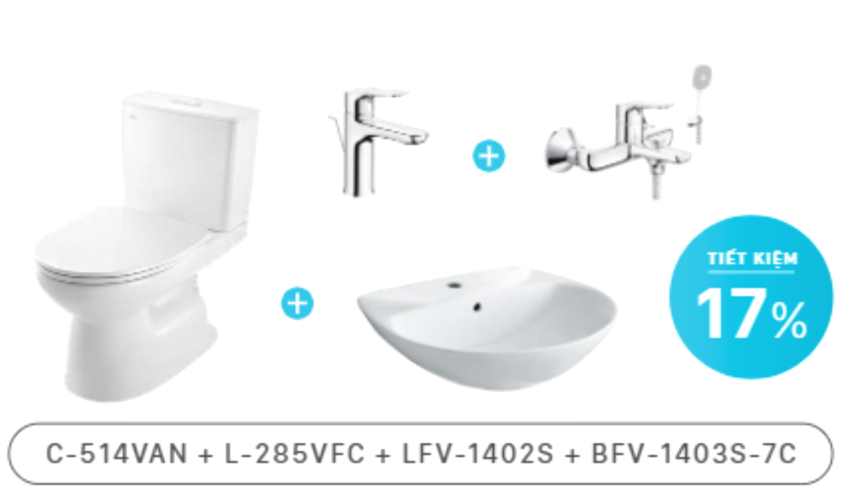 Trang chủ > Combo thiết bị vệ sinh, nhà tắm > Combo INAX > COMBO: C-514VAN + L-285VFC + LFV-1402S + BFV-1403S-7C