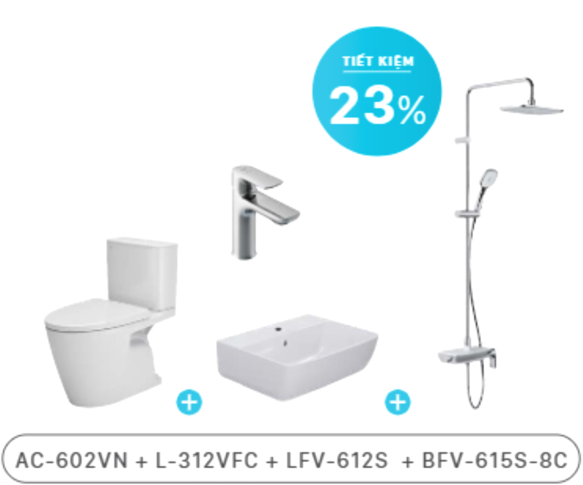 Trang chủ > Combo thiết bị vệ sinh, nhà tắm > Combo S200 > COMBO S200 AC-602VN/L-312V(FC)/LFV-612S/BFV-615S-8C