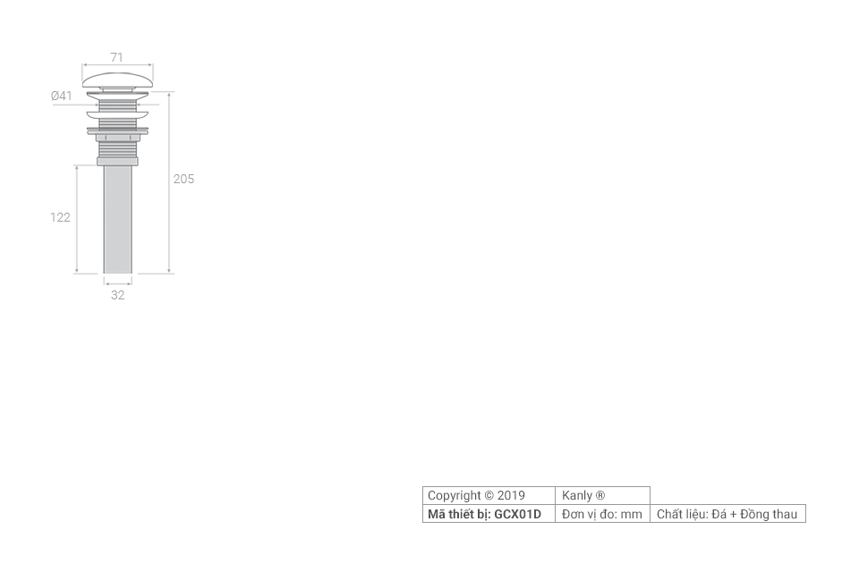 ĐẦU XẢ BẰNG ĐỒNG,NÚT NHẤN BẰNG ĐÁ KANLY – GCX01D