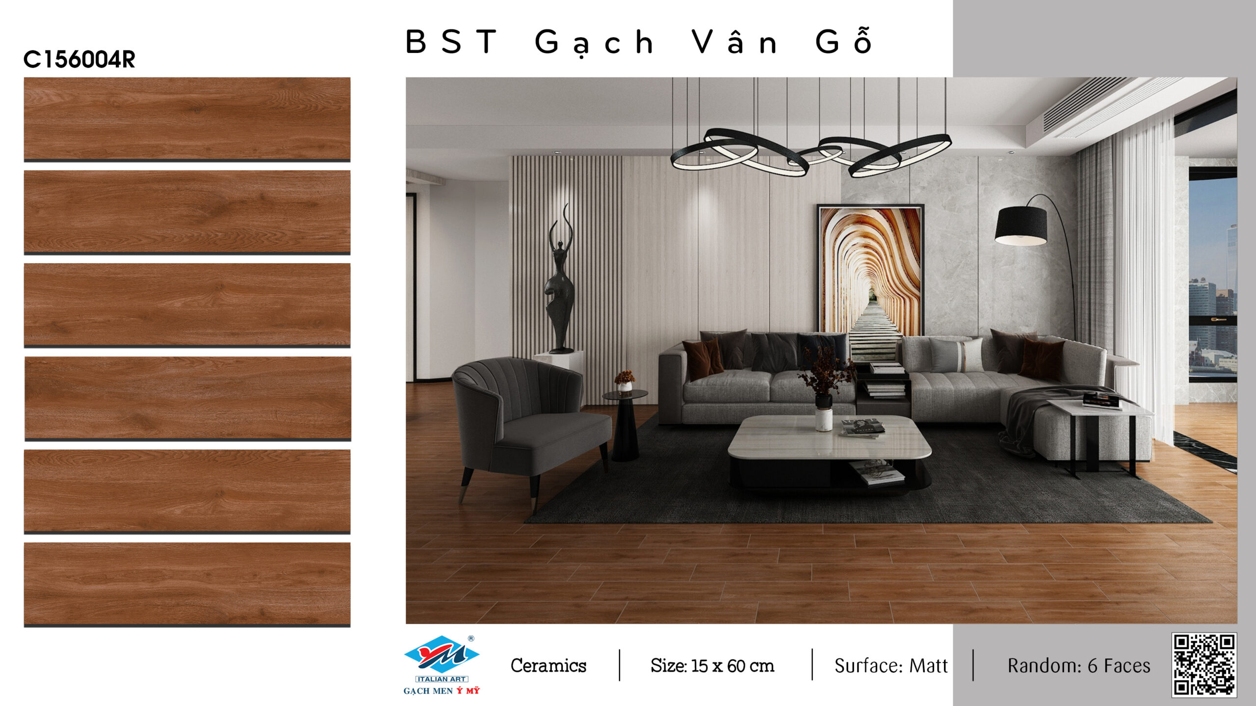Gạch Lát nền, ốp tường Ý Mỹ 15×60 C156004R