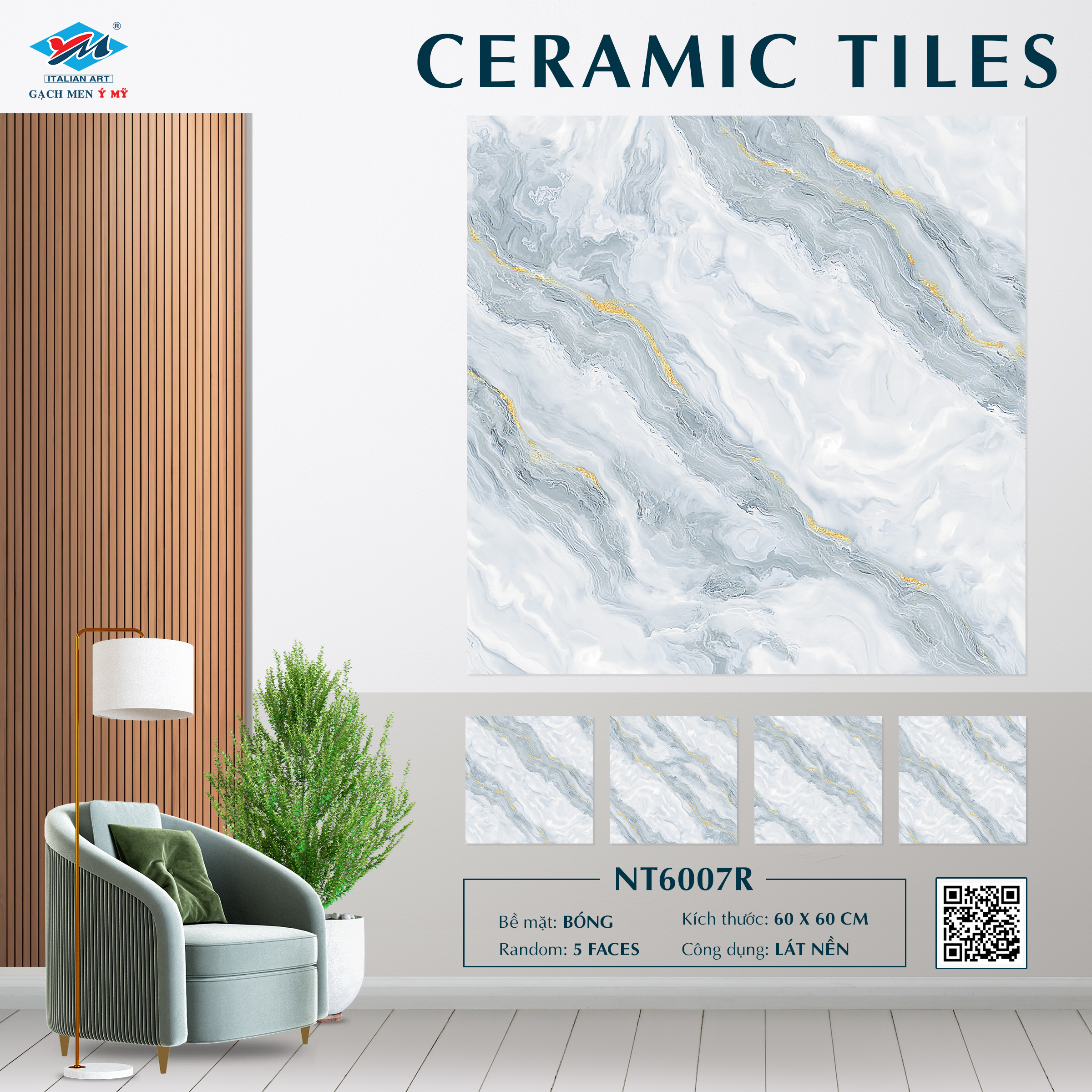 Gạch Lát nền Ý Mỹ 60×60 NT6007R