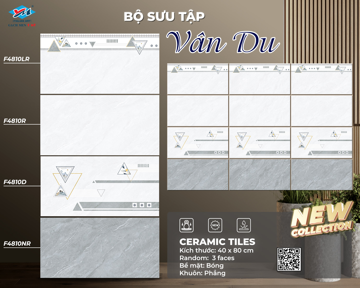 Gạch Ốp tường Ý Mỹ 40×80 F4810D