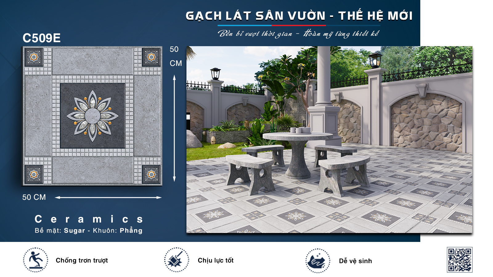 Trang chủ > Gạch > Gạch ngoài trời > Gạch Sân vườn Ý Mỹ 50x50 C509E
