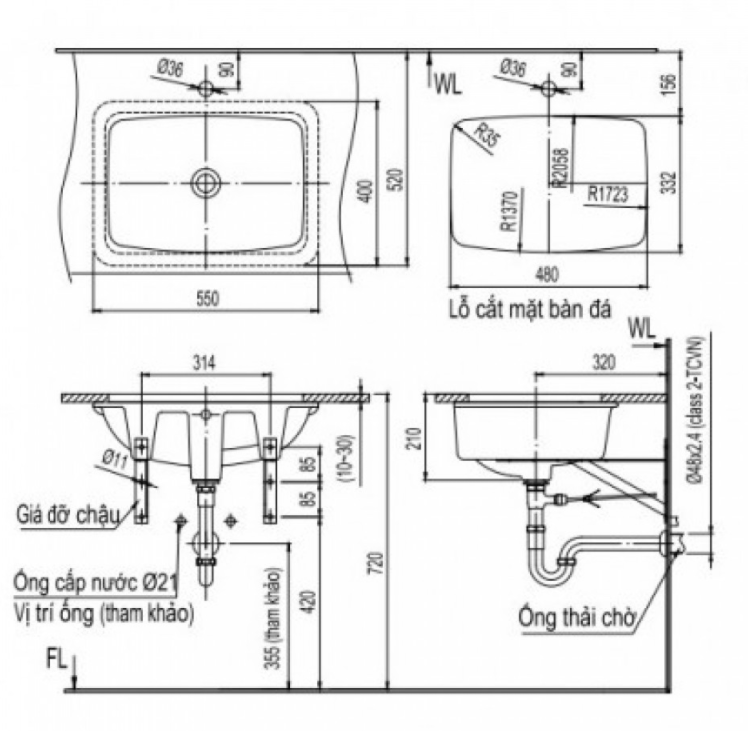 LAVABO ÂM BÀN INAX – L-2298V