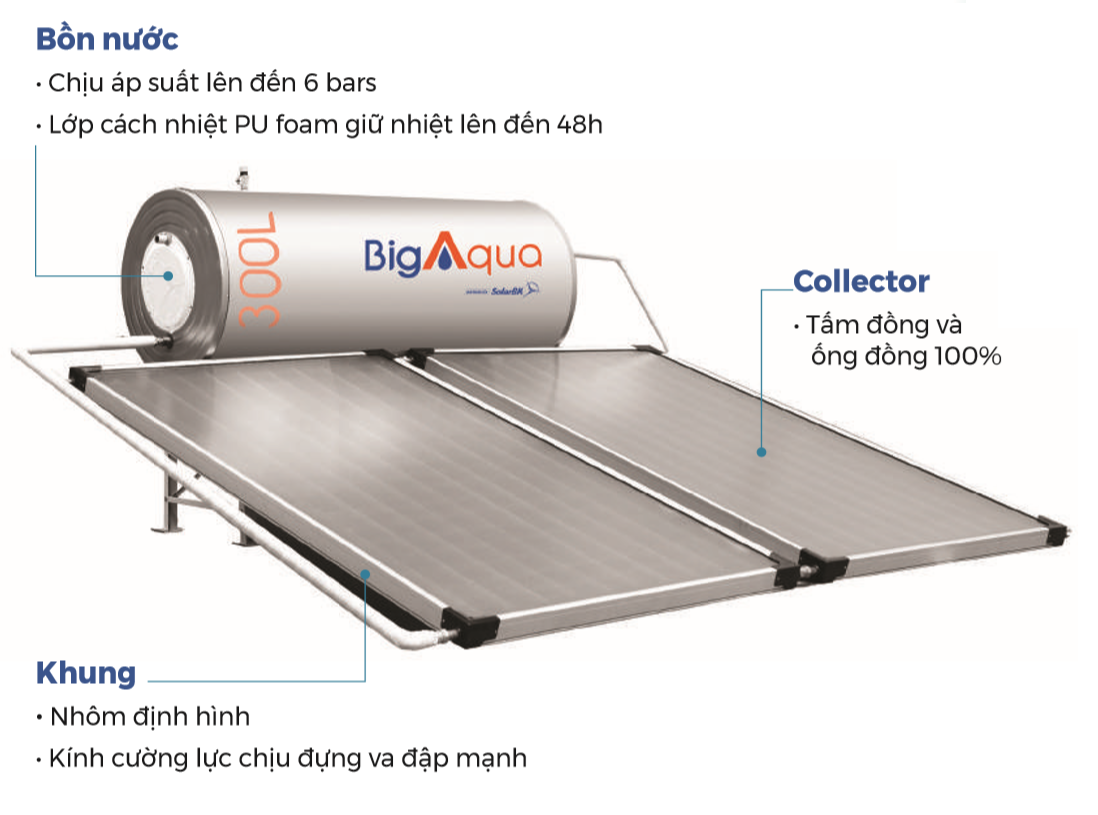 MÁY NƯỚC NÓNG NĂNG LƯỢNG MẶT TRỜI SOLARBK DÒNG BIG AQUA 200L & 300L