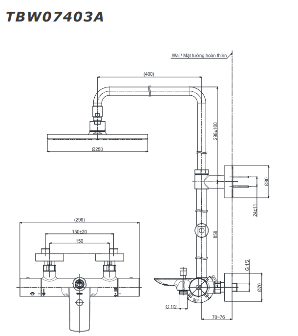 Trang chủ > Thiết bị vệ sinh > Sen cây nhiệt độ kèm vòi xả bồn TBW07403A cao cấp, chính hãng | TOTO