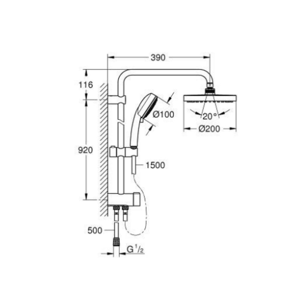 Thân sen cây tắm đứng Tempesta Cosmopolitan System 200 GROHE 26453000