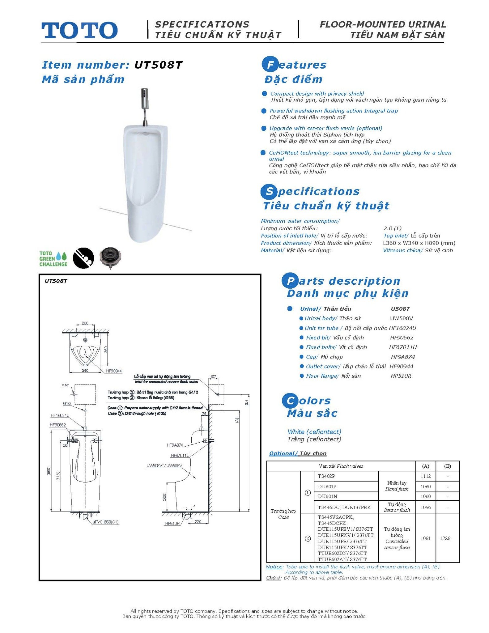 Đánh giá TIỂU NAM ĐẶT SÀN TOTO – UT508T (Đường cấp nước phía trên)