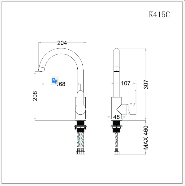 Vòi bếp nóng lạnh K415C