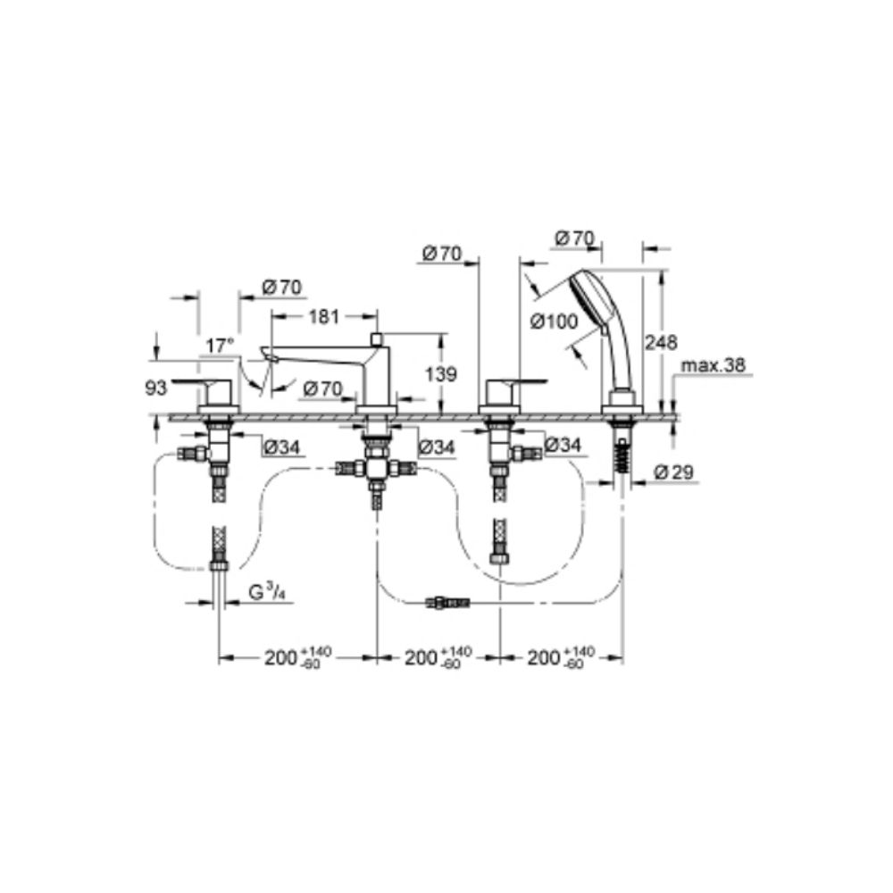 Vòi bồn tắm 4 lỗ nóng lạnh kèm tay sen BauEdge GROHE 2512000A