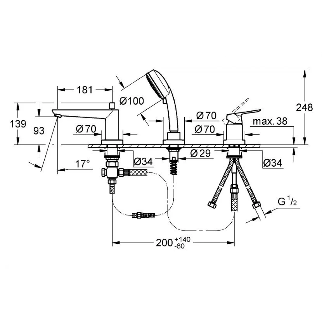 Vòi Bồn Tắm Grohe 2511700A BauEdge OHM 3 Lỗ – Tuấn Đức