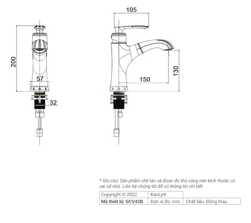 Vòi Lavabo nóng lạnh bằng đồng KANLY – GCV42B