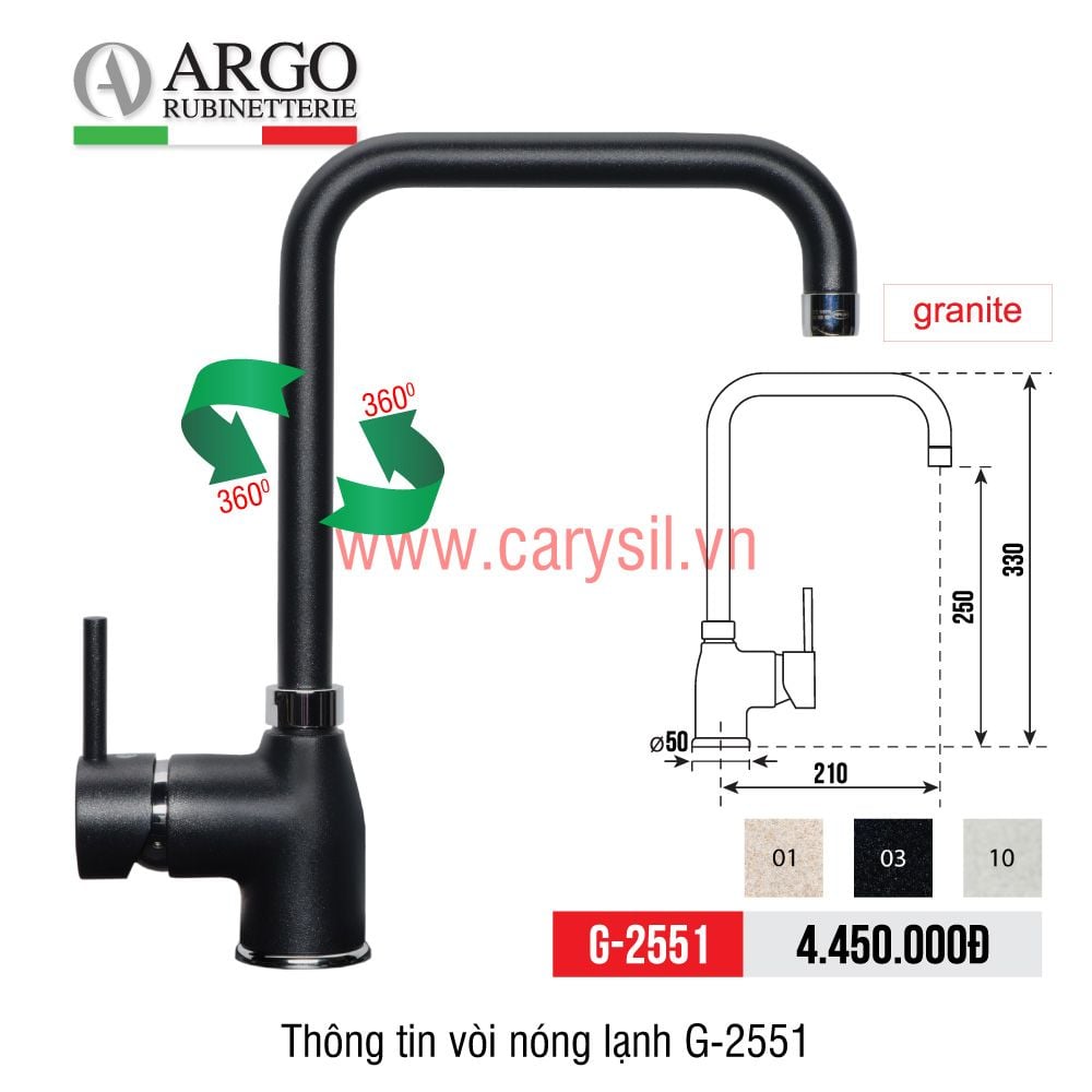 Vòi Rửa Chén Bát Cao Cấp Argo – Mã G-2551- phối đồng nhất cùng chậu Carysil